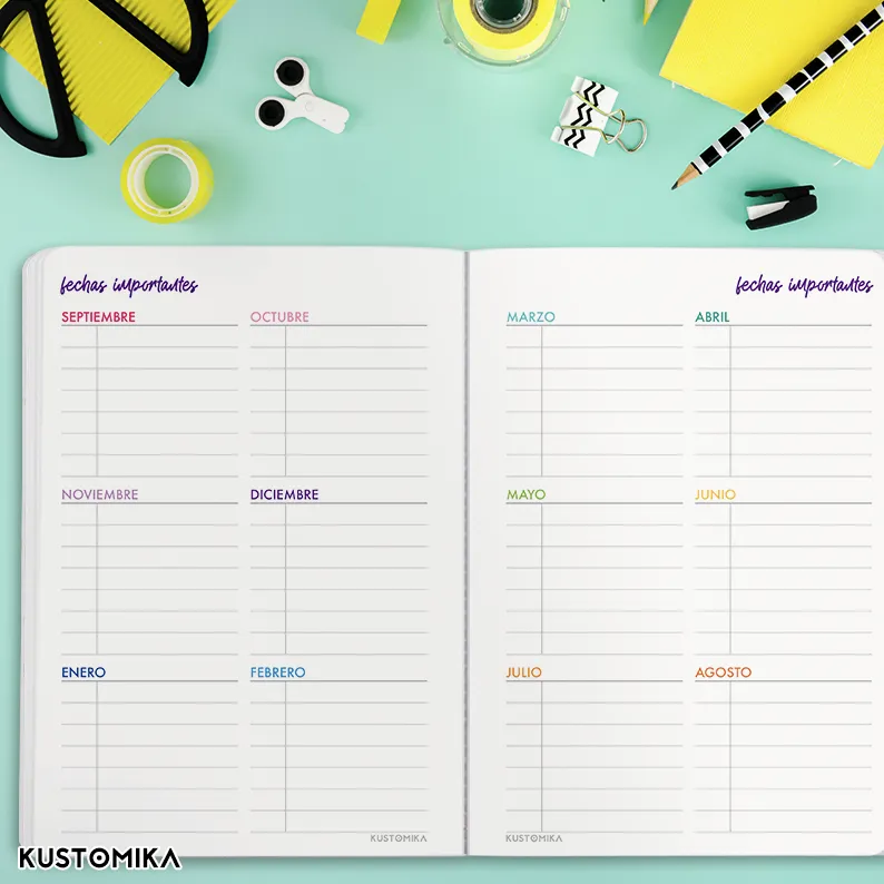 Con planificación semana vista desde septiembre hasta final de junio 2025, para planificar tus estudios, actividades extracurriculares y tiempo libre. ¡No se te escapará nada!