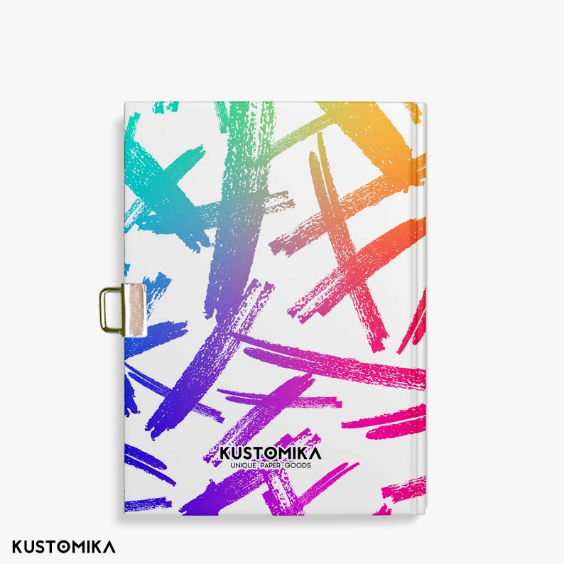 Diario con nombre personalizado con candado y cosido a mano – Portada Trazos Colores